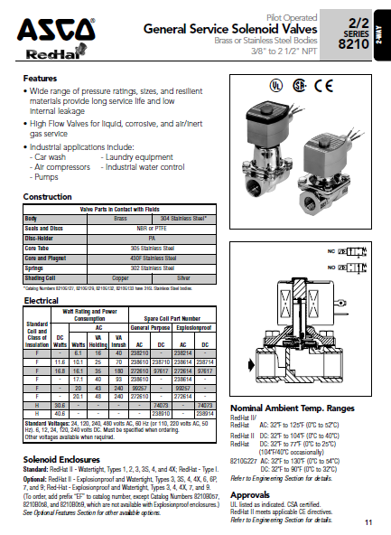 美國ASCO管道用二通防爆電磁閥-EF8210G088