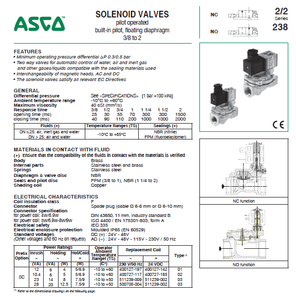 美國(guó)ASCO電磁閥-SCE238D004 銅 水閥DN20